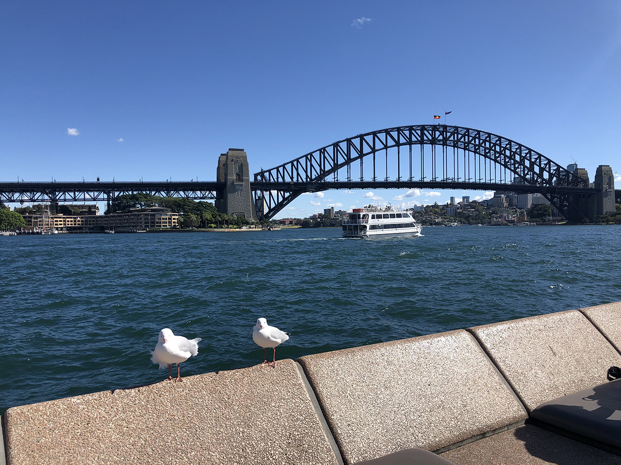 저도 하버브릿지를 배경으로 사진을 찍어보았는데요. 갈매기도 함께 해 주었습니다. 시드니 여행에서 꼭 남겨야 하는 사진 구도이죠.