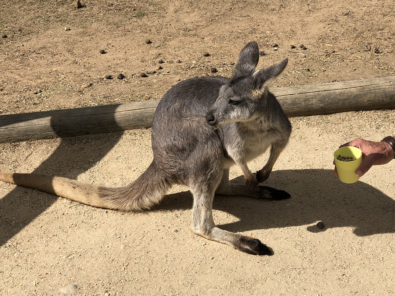 그래서 이렇게 울타리 너머로 넘어온 캥거루들과 함께 놀 수 있습니다. 캥거루를 보호하면서도 관광객들이 만질 수도 있게 하는 것이죠.