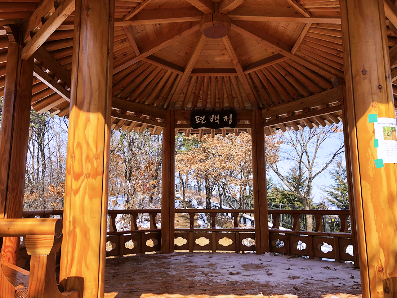 이곳은 편백정이라는 정자입니다. 정자에서 간식도 먹고 쉬었다 가세요.