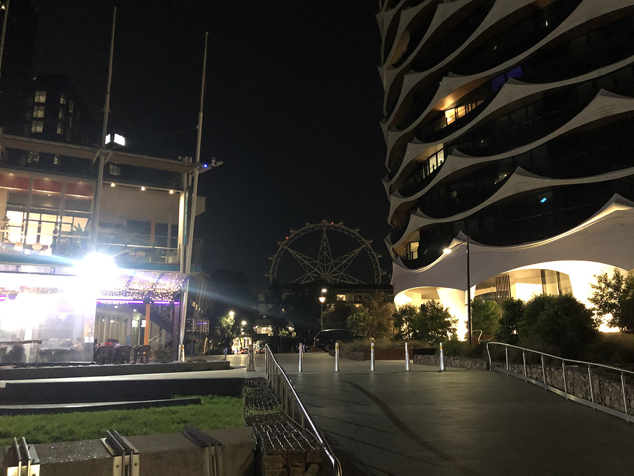 워터프론트시티는 독랜즈 북쪽에 위치한 지역입니다. 이곳은 상업지역인데요. 쇼핑몰, 미술관, 호텔, 리조트, 울월스, 코스트코, 영화관, 아이스링크 등 다양한 상업지가 있습니다. 그리고 멜버른의 대관람차인 멜버른 스타도 있습니다.