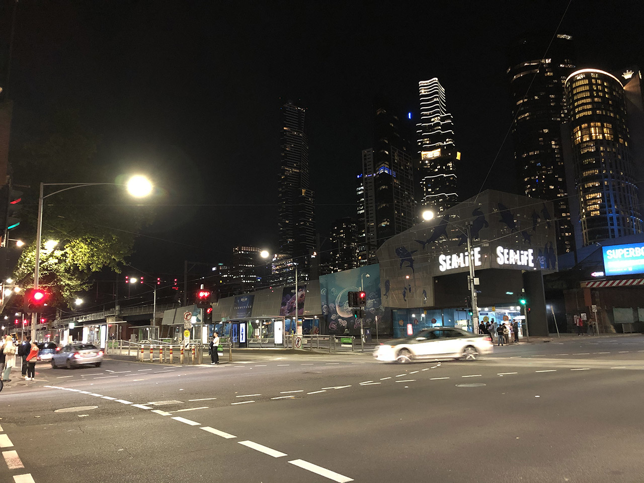 멜버른 시티 중심 번화가에서 밤거리 구경을 충분히 즐긴 저는 다른 장소들도 보기 위해 움직였습니다. 분위기가 좋아서 술도 마시고 싶다는 생각이 들었지만, 밤 비행기를 타야 해서 아쉽지만 다음을 기약했습니다.