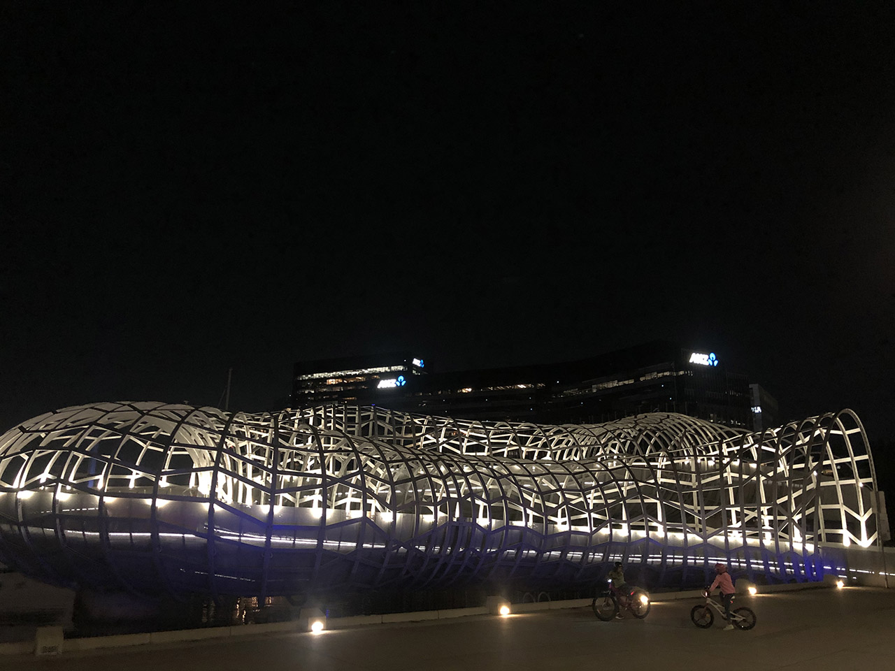 이렇게 항구에 공원이 있고 이상한 예술 작품이 전시되어 있습니다. 산책하거나 조깅하는 사람들은 많이 보였습니다.