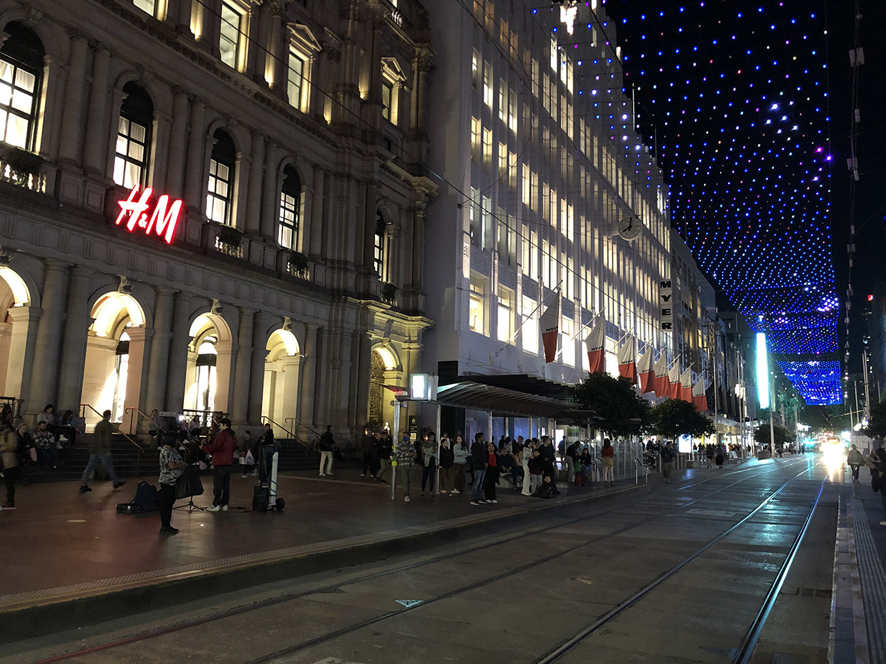 엘리자베스 스트릿에서는 저녁이 되면 버스킹 공연도 펼쳐집니다. 저도 버스킹 공연을 구경하느라 거의 20분은 앉아 있었던 거 같은데요. 멜버른에서의 마지막 밤인 만큼 뭔가 뭉클한 기분도 들었습니다.