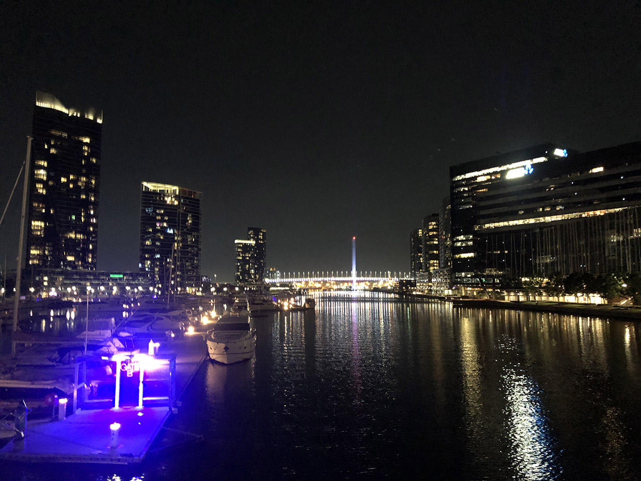독랜즈는 멜버른 시티 서쪽에 위치한 작은 항구 개발 단지입니다. 쇼핑, 식당, 공원, 광장, 예술품, 공연, 스포츠 등 현대적인 복합 단지로 개발되어 있다고 소개 글을 읽었는데, 저녁에 갔을 때는 그냥 조용한 항구 공원이었습니다.