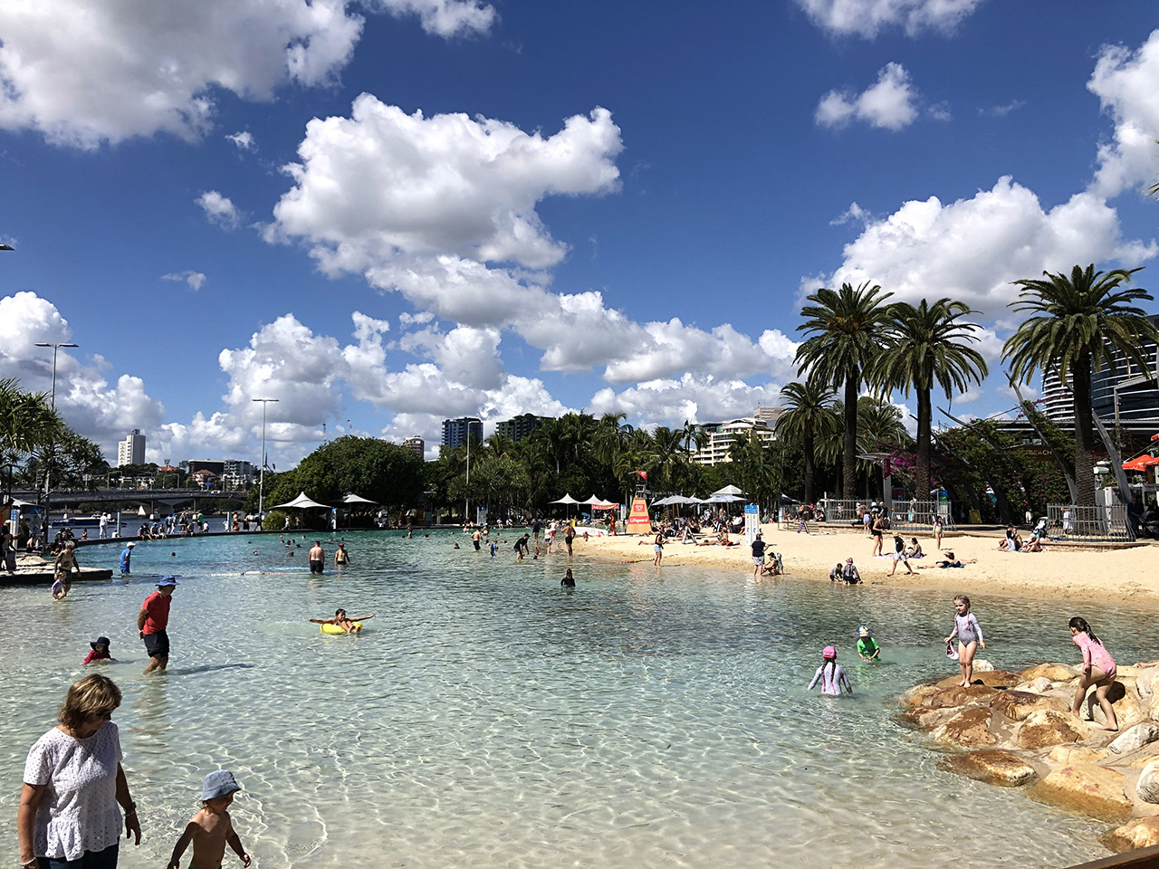 마지막 장소는 브리즈번 사우스뱅크의 하이라이트 스트리트비치입니다. 스트리트비치는 호주에서 유일한 도심 속 인공 해변으로 브리즈번의 상징이 되었습니다.