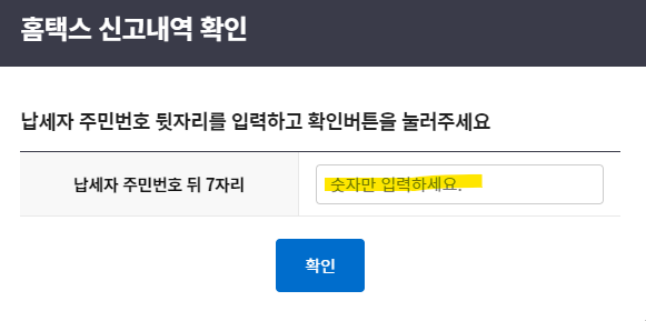 6. 주민번호 뒤 7자리를 입력하고 확인을 클릭합니다.