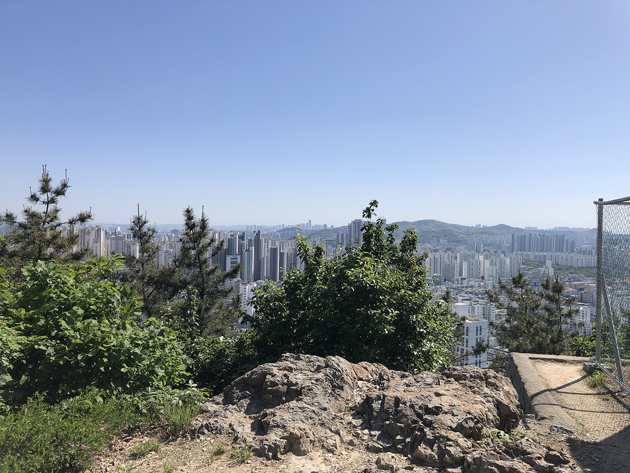 인천시의 멋진 전망이 보입니다. 저기 멀리 인천 대교도 볼 수 있습니다.