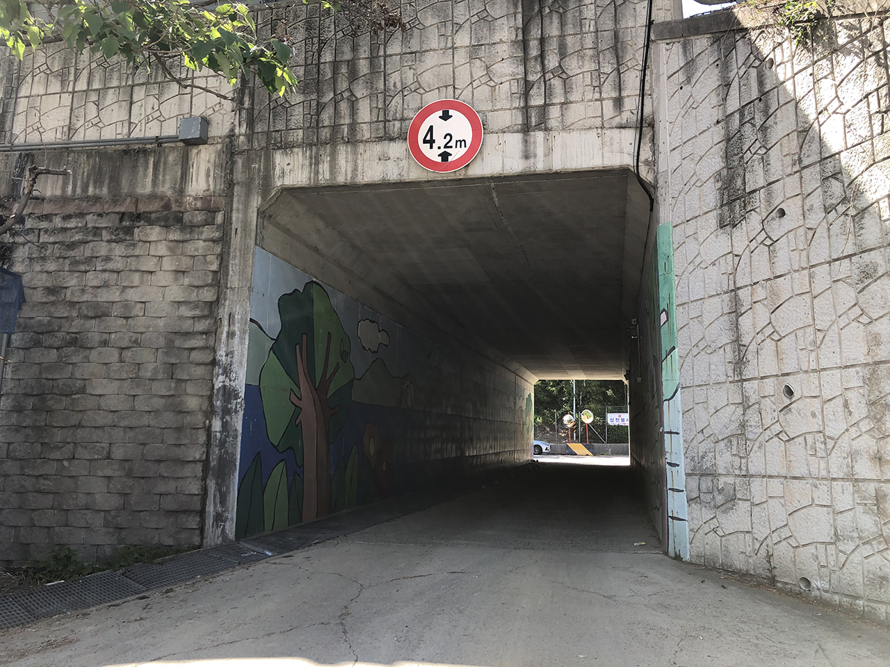 이제 도롱뇽 마을은 지나 만월산으로 이동합니다. 만월산으로 가기 위해서는 도로를 건너야 하는데요. 도로 밑으로 터널이 뚫려 있습니다.