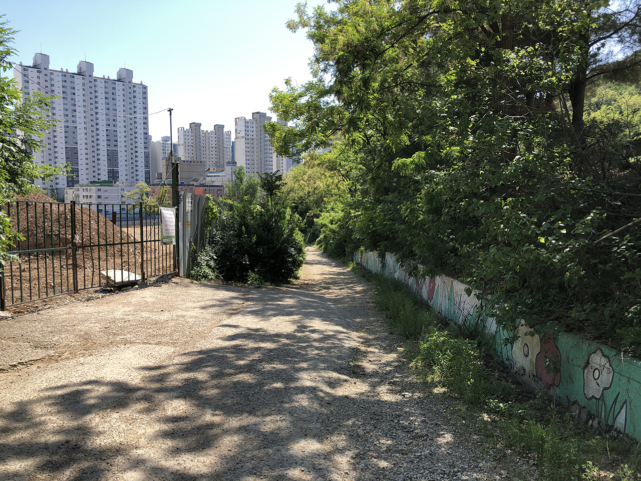 저는 만수산 무장애길에서 도롱뇽마을로 향했습니다. 무장애길을 걷다 보면 이렇게 도롱뇽마을로 가는 길이 뚫려 있습니다.