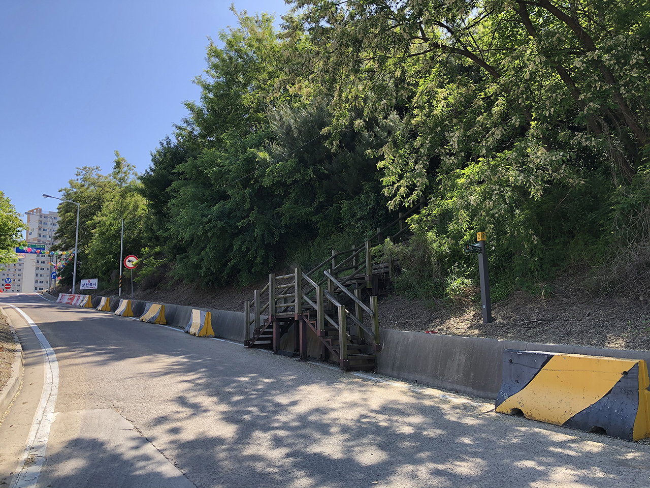 터널을 나와 왼쪽을 보면 저런 계단이 보이는데요. 저기로 올라가면 만월산으로 갈 수 있습니다.