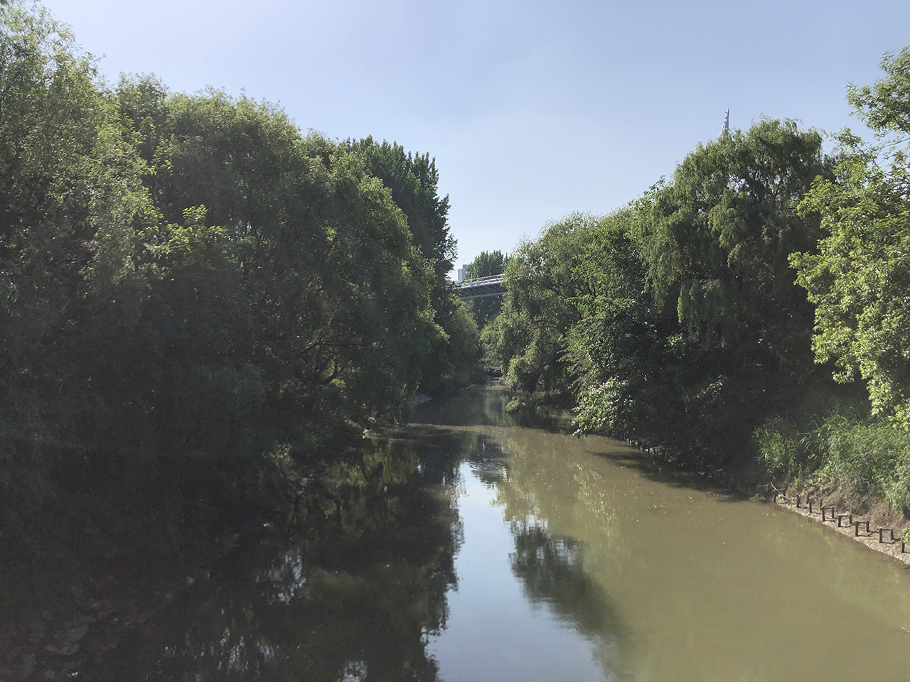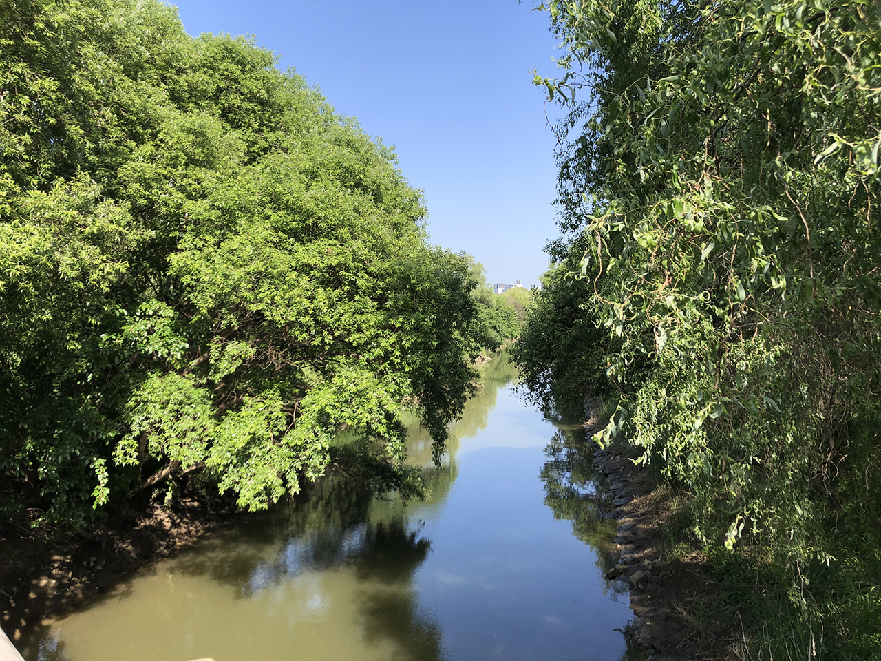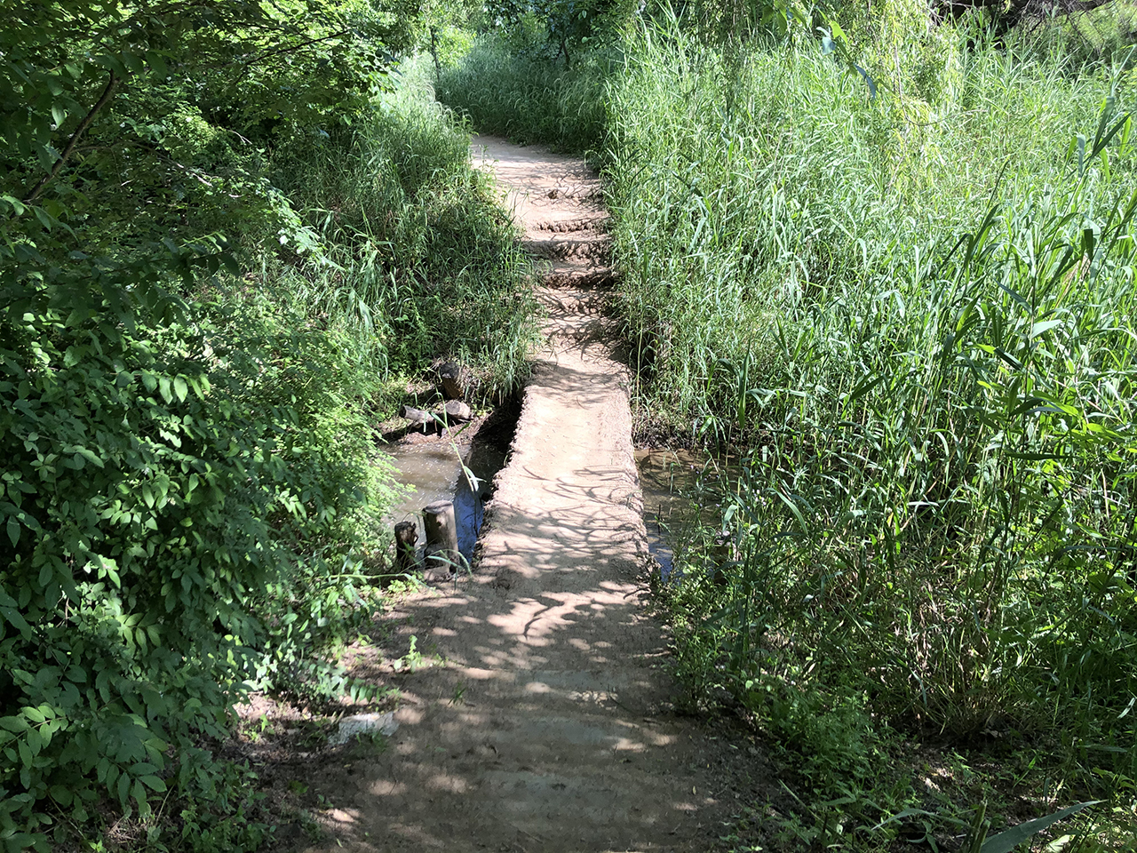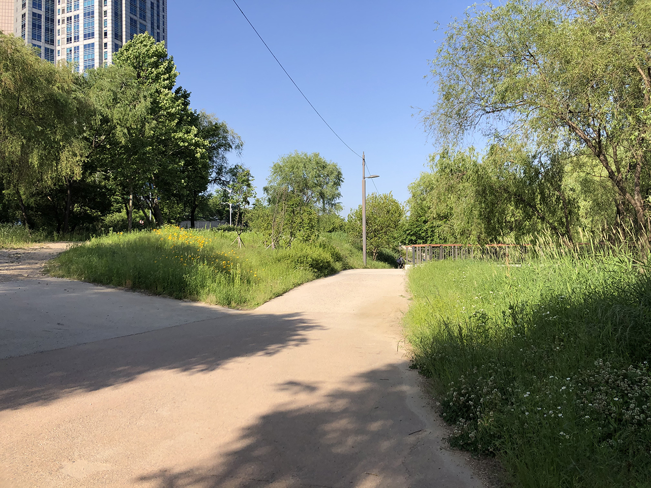 약간 이동하면 다리가 하나 있는데요. 다리 위에서 이렇게 문화다리와 샛강을 볼 수 있습니다.