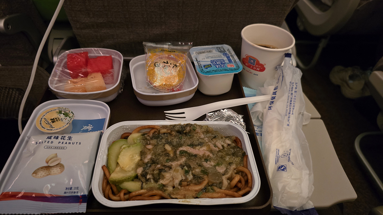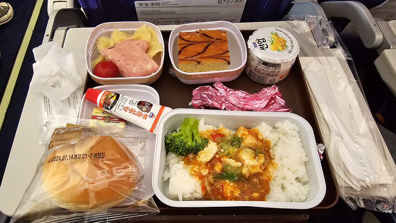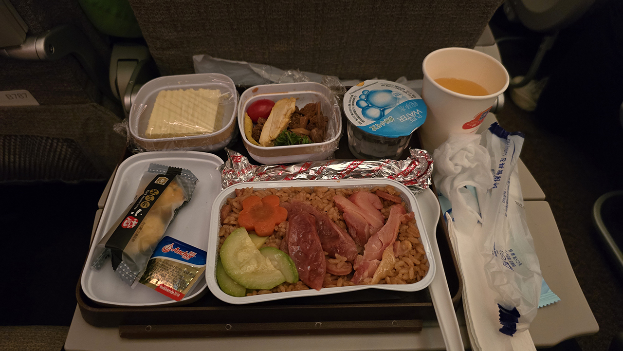 인천에서 상하이까지 2시간 얼마의 짧은 비행에도 푸짐한 기내식이 제공됩니다. 보통 저가 항공은 아무 것도 안 주거나 간식만 조금 주고 하는데, 동방항공은 짧은 비행에도 기내식이 잘 나와서 아주 만족스러웠습니다.
