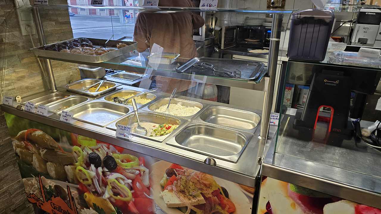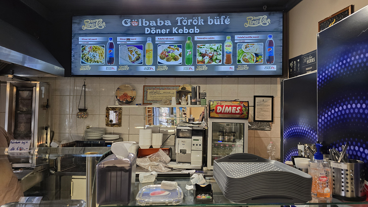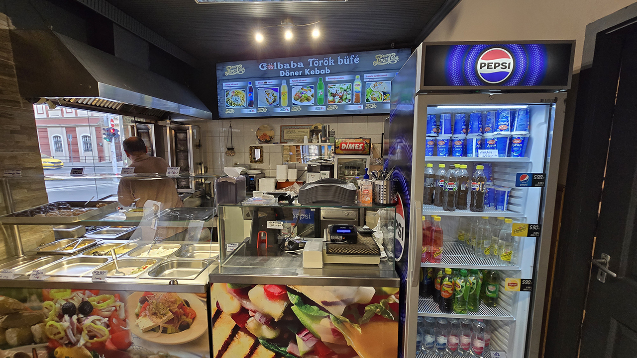 주 메뉴는 5가지입니다. 가격은 2000~3000포린트로 주변 식당에 비해 저렴한 편이었습니다. 저는 2000포린트짜리 케밥을 주문했습니다. 각 메뉴에는 음료가 한 병씩 포함되어 있습니다.