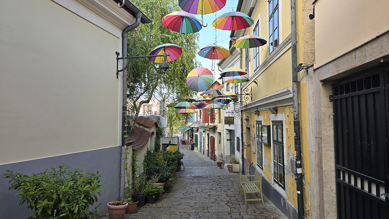골목으로 들어가야 센텐드레 우산거리가 보이는데요. 구글맵에서 Szines esernyok 또는 umbrella street로도 나옵니다. 정확한 위치는 아래 구글맵을 참고해 주세요.