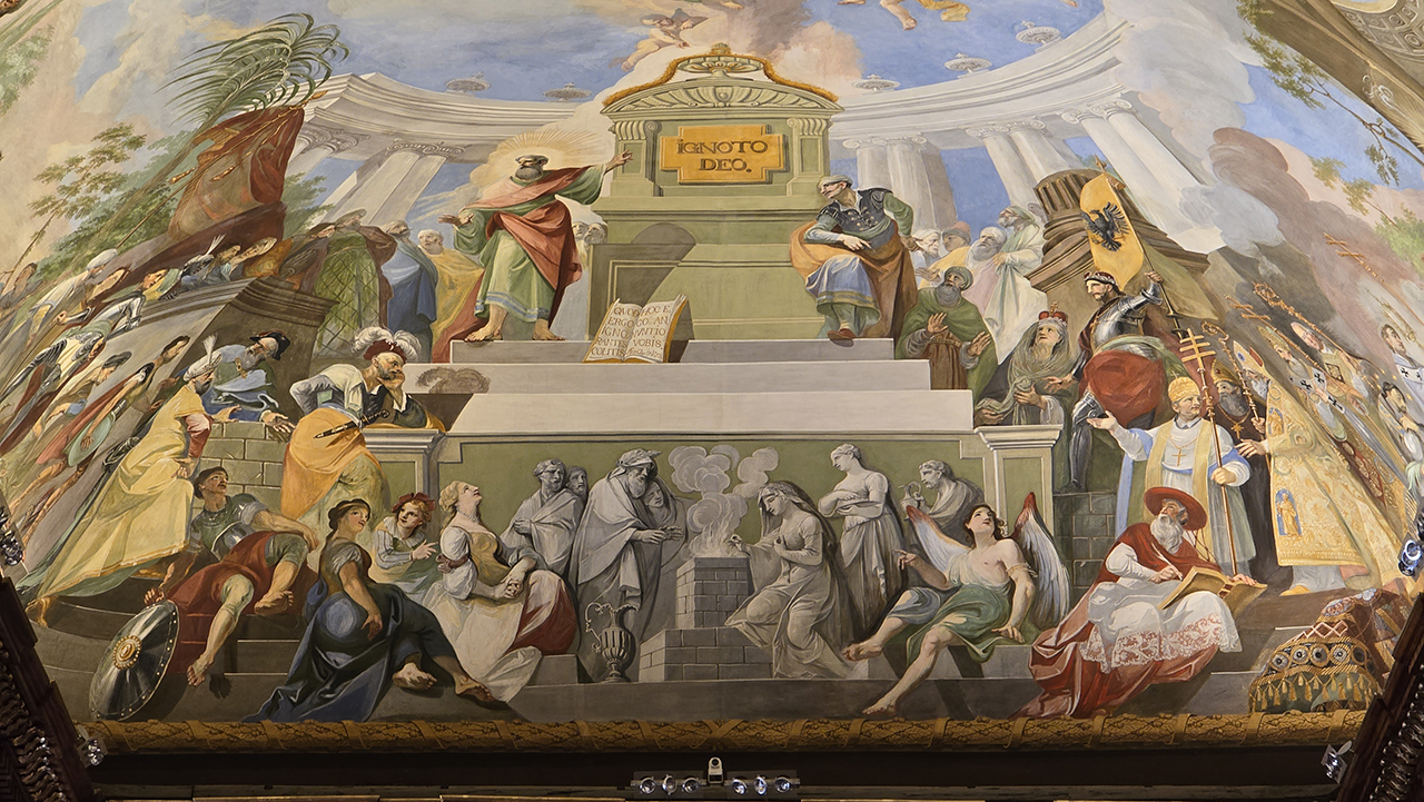두 번째 방입니다. 이름은 신학의 방이라고 합니다. 바로크 양식으로 만들어졌다고 하네요. 옆에 있던 철학의 방보다 더 먼저 지어졌다고 합니다. 여기도 그냥 문 밖에 서서 저렇게 구경하는 방식입니다.