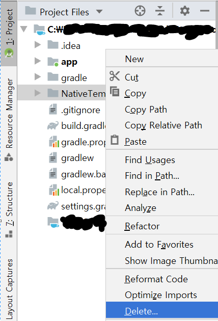 3단계. 프로젝트 폴더에서 모듈 삭제