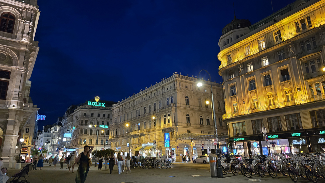 밤에도 사람이 많습니다. 오스트리아 치안은 걱정할 필요가 없습니다. 밤에도 사람이 넘쳐납니다.