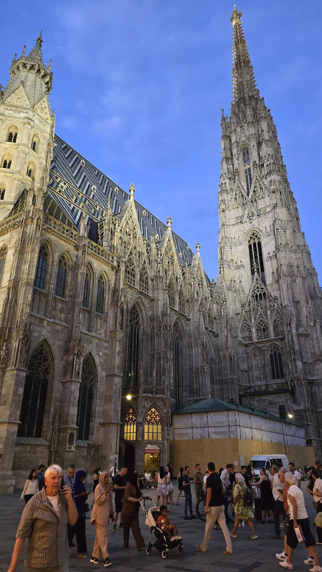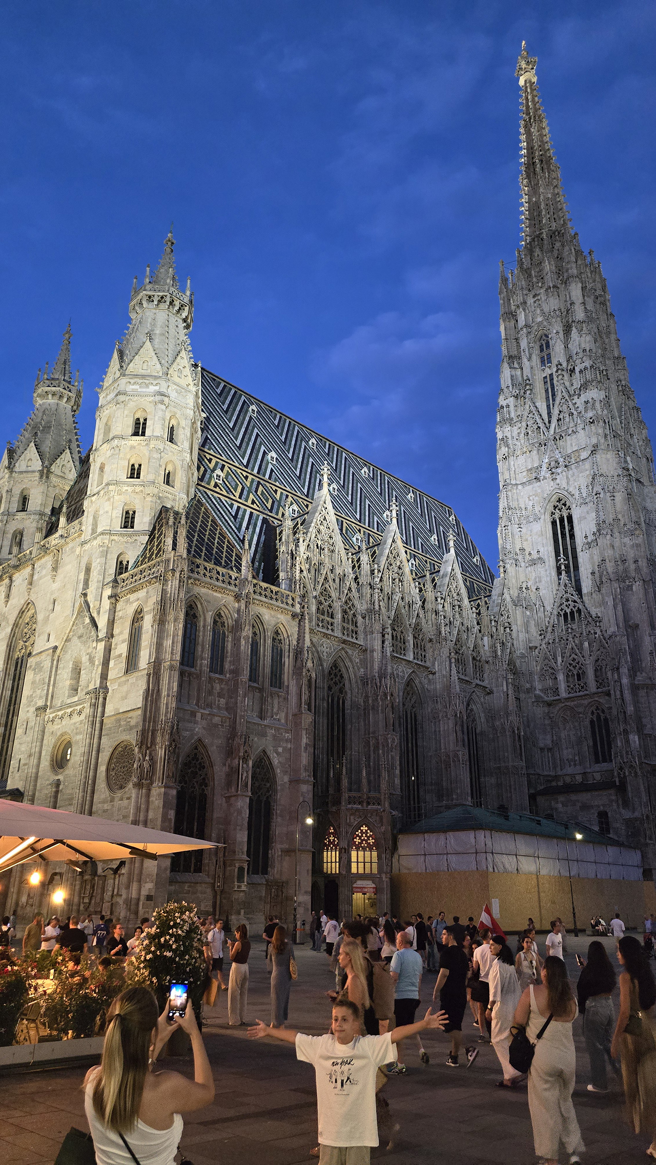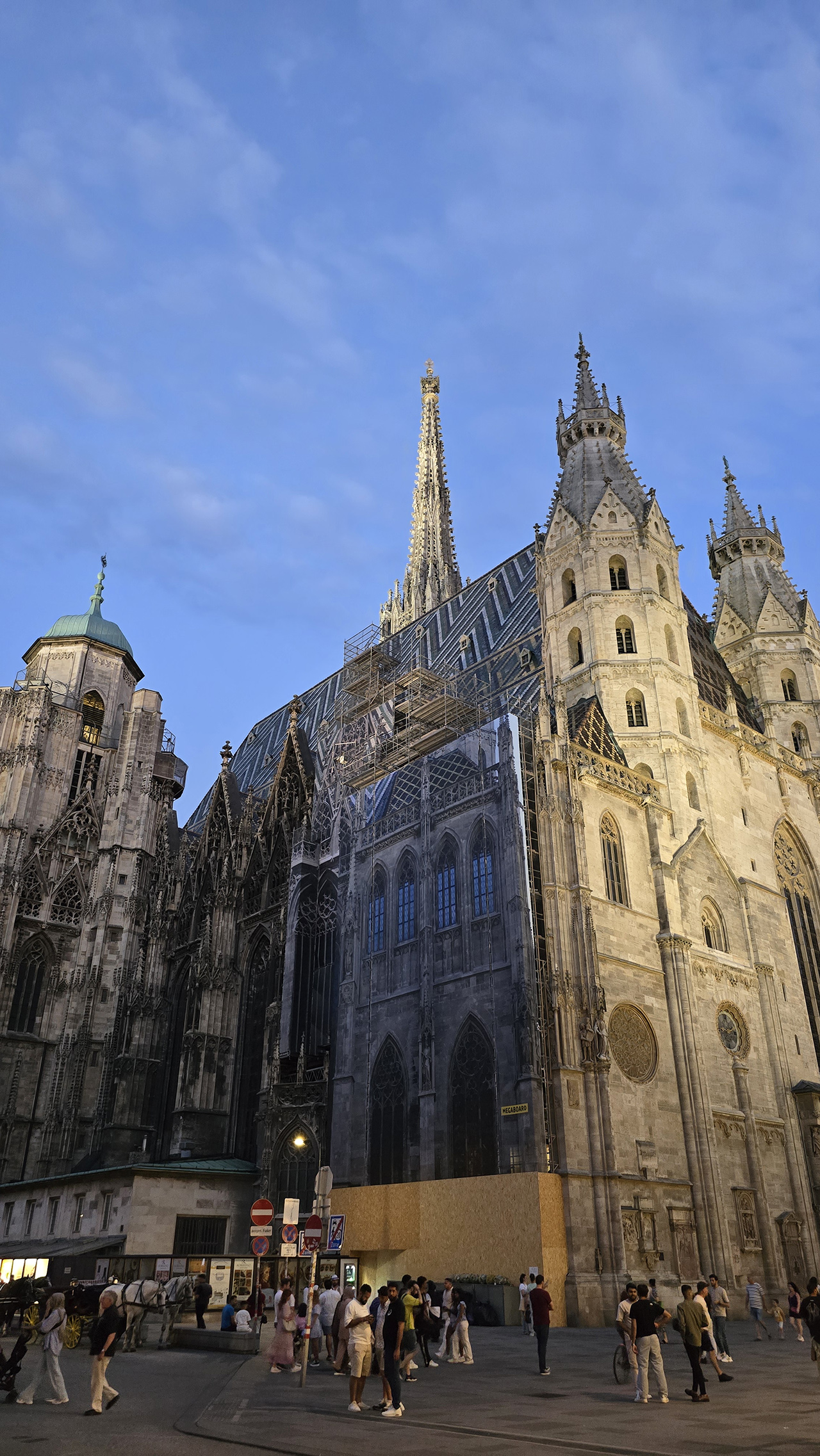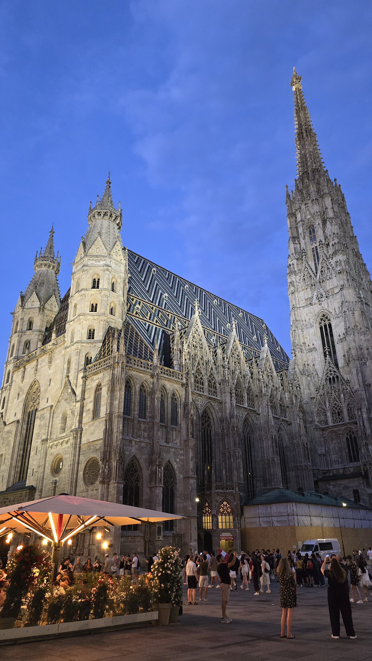 슈테판 대성당에 도착했습니다. 관광객이 아주 많은데요. 실제로는 더 어두웠는데 사진의 밝기를 높여봤습니다.