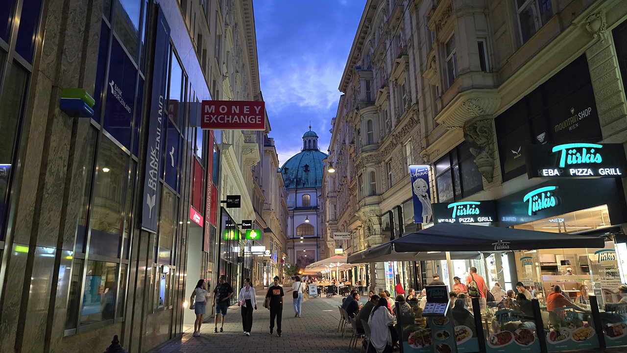 비엔나 번화가를 걸으면서 먹거리를 즐겨도 되고 각자의 방식으로 즐기면 됩니다. 저는 곧 떠나야 해서 길거리 구경만 했습니다.