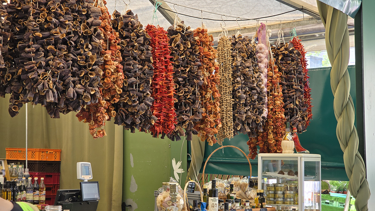 그럼 시장을 잠시 함께 둘러볼까요? 아침이라서 채소나 과일 등 식료품을 파는 가판대가 많이 열려있었습니다.