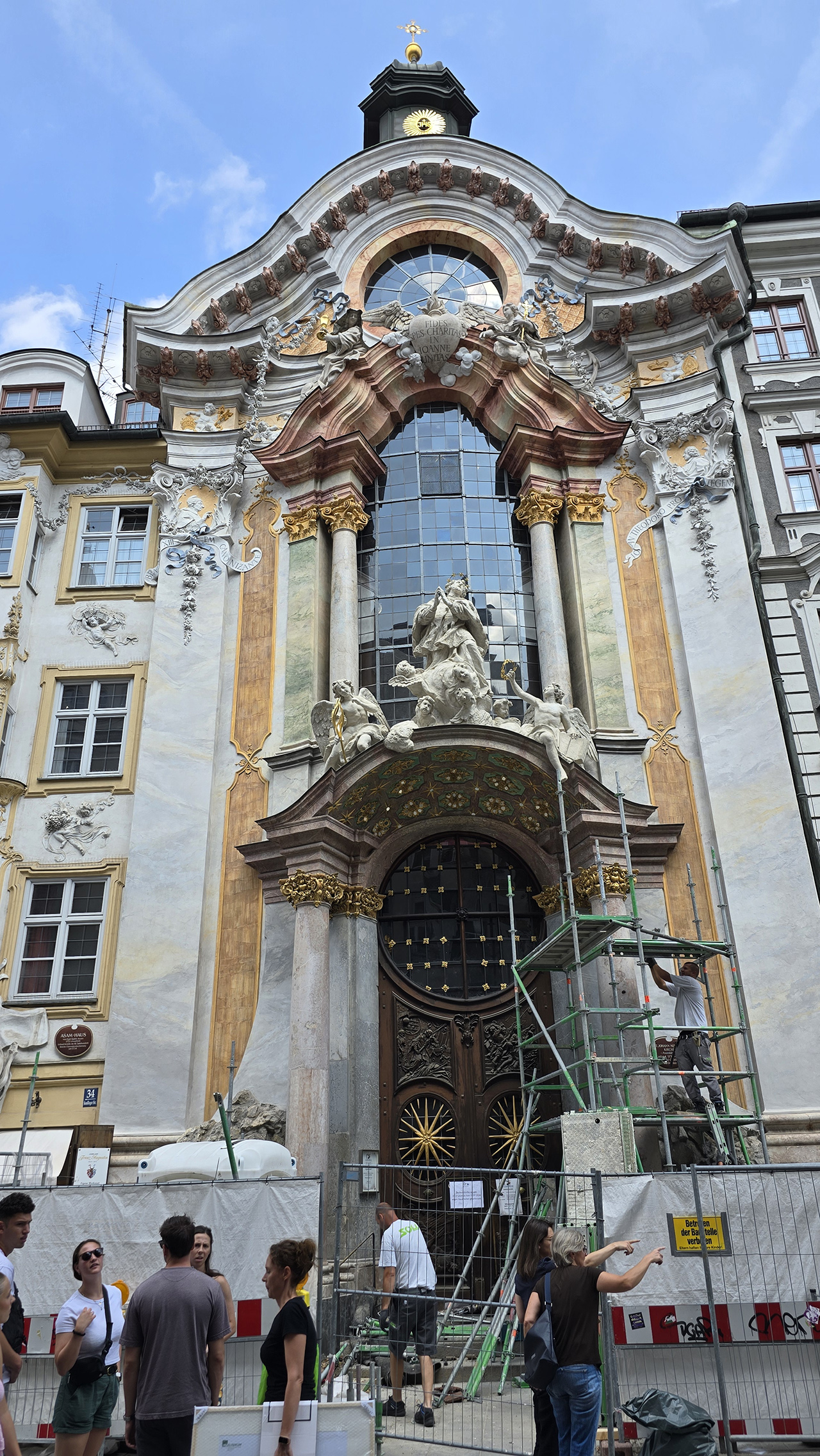 뮌헨 구시가지에는 아잠교회라는 작은 교회가 있습니다. 1700년대에 세워졌으며 프레스코화, 금박, 호화로운 바로크 양식의 인테리어로 유명한 곳인데요. 실내가 특히 아름다워서 관광객들에게 나름 인기가 있는 곳입니다.