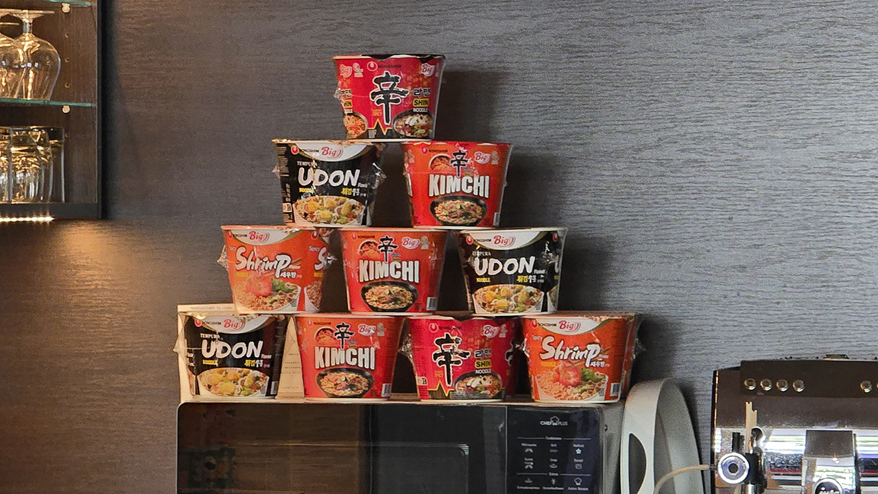 로비에는 작은 바가 있는데요. 한국 컵라면이 있어서 놀랐습니다.