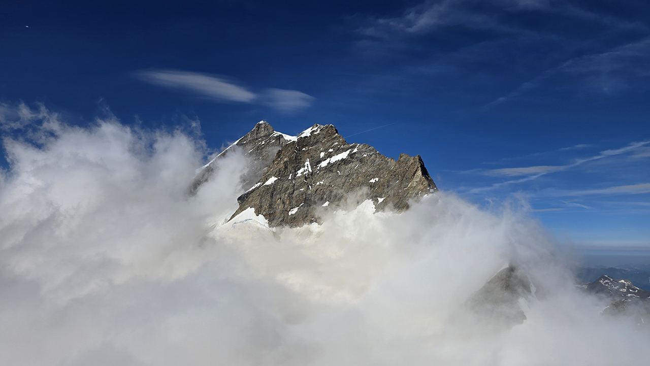 구름이 걷히고 4,107m 높이의 묀히(Monch)가 나타났습니다. 융프라우보다 51m 낮습니다.