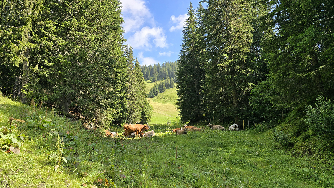 알프스에 살고 있는 소도 많이 볼 수 있습니다.