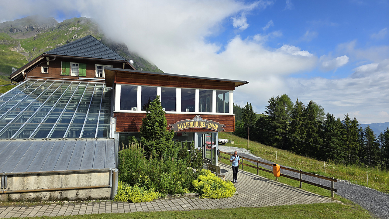 푸니쿨라를 타고 알멘트후벨(Allmendhubel)에 올라왔습니다. 알멘트후벨은 해발 1,907m에 있습니다. 파노라마 레스토랑, 플라워 파크, 그리고 꽃길 트레일을 즐길 수 있습니다.