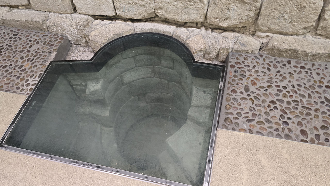 지하 1층에 있는 조각품 전시장이 밖으로 보입니다.