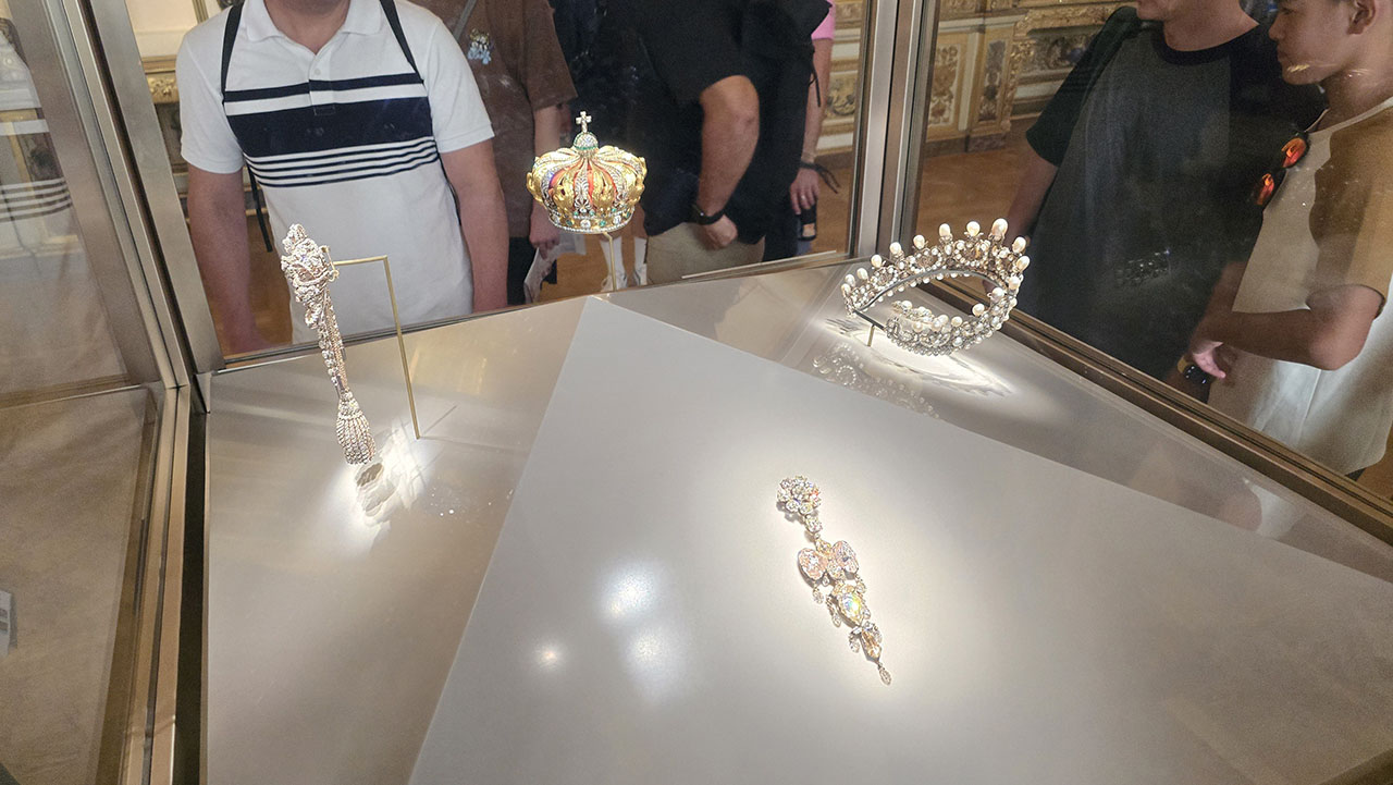 세계 장물 박물관을 구경하고 나가는 관광객들.
