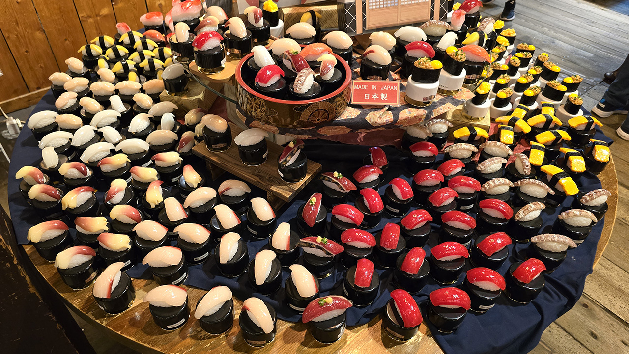 다시 1층으로 내려왔는데요. 스시 모양의 오르골도 있네요.