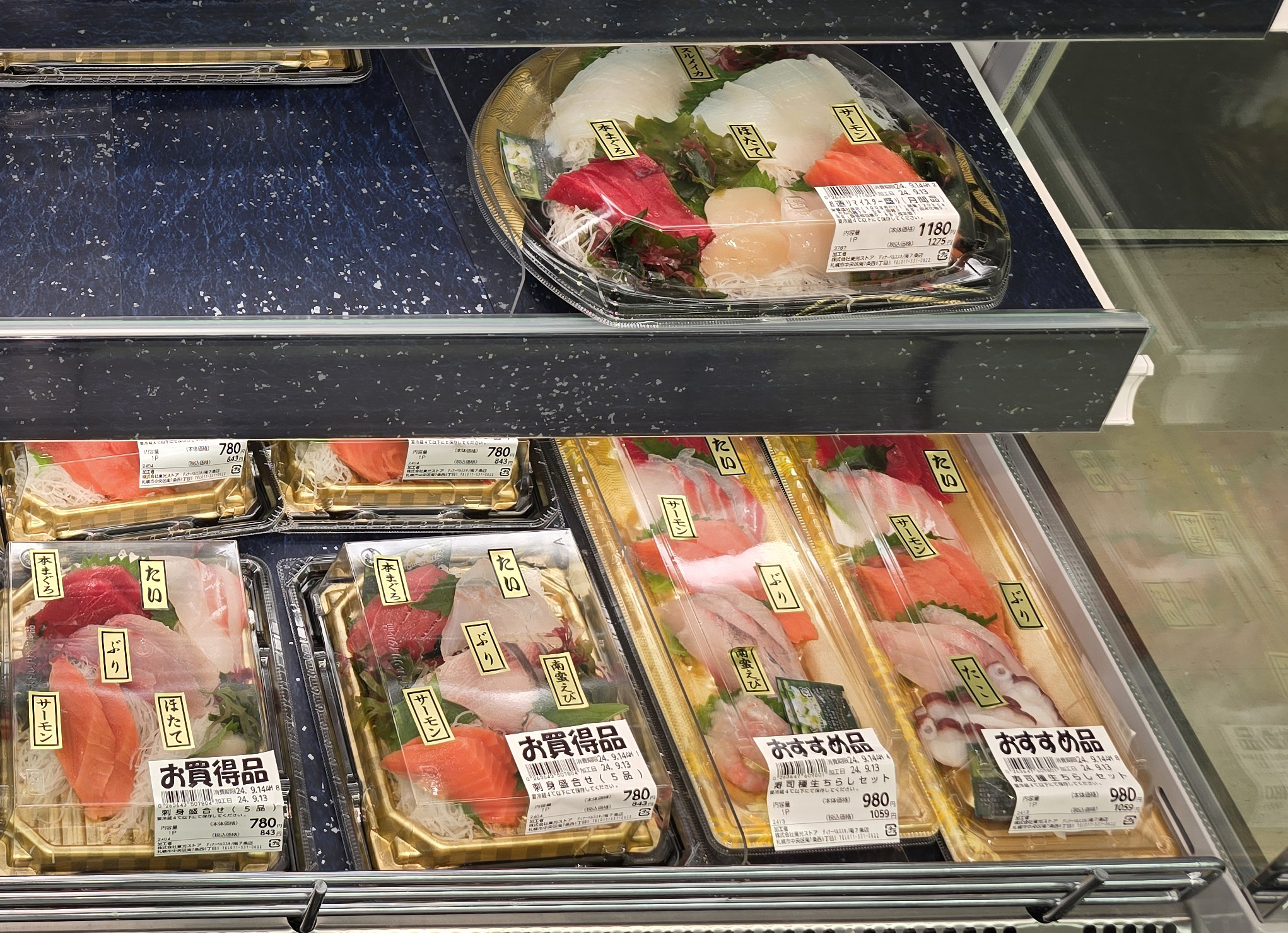 일본에 오면 또 마트 초밥을 안 먹어볼 수 없죠. 디너벨에는 홋카이도 바다에서 잡은 싱싱한 해산물로 초밥을 만들어서 저렴한 가격에 팔고 있습니다.