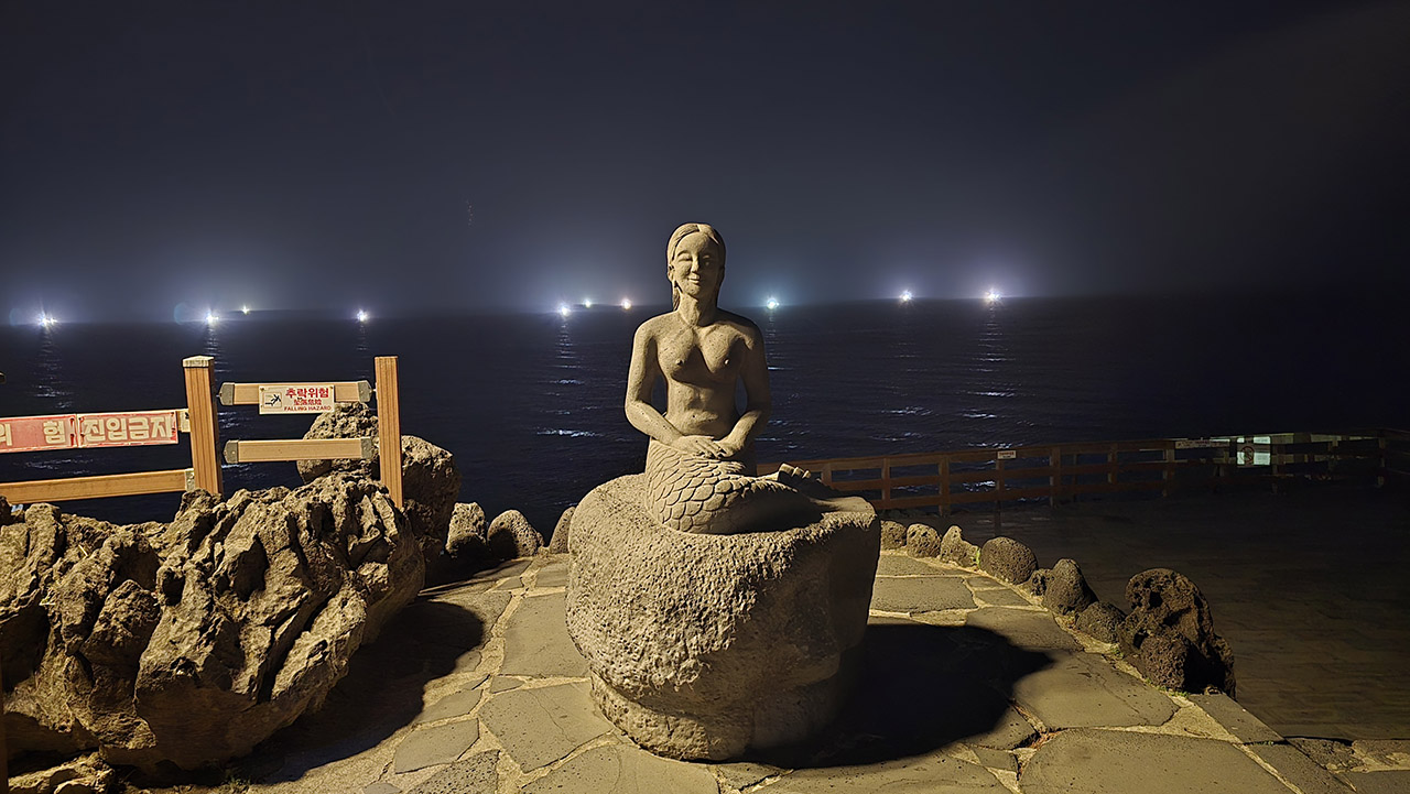 가는 길에는 뭐 이런 인어상도 볼 수 있는데요. 여기서도 용두암이 보입니다.
