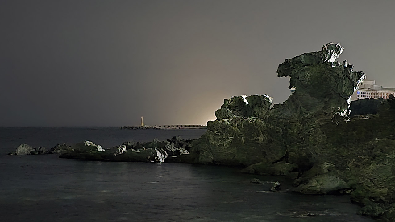 용두암에도 이렇게 밤에 조명이 켜집니다. 하지만 용두암을 제대로 보려면 더 걸어가서 봐야 합니다. 아직 만족하지 마세요.