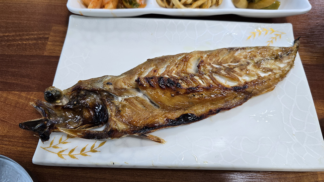 조금 기다리니 고등어구이정식이 나왔습니다. 미리 담아온 기본 반찬에 고등어, 밥, 국이 나와서 완성됩니다.