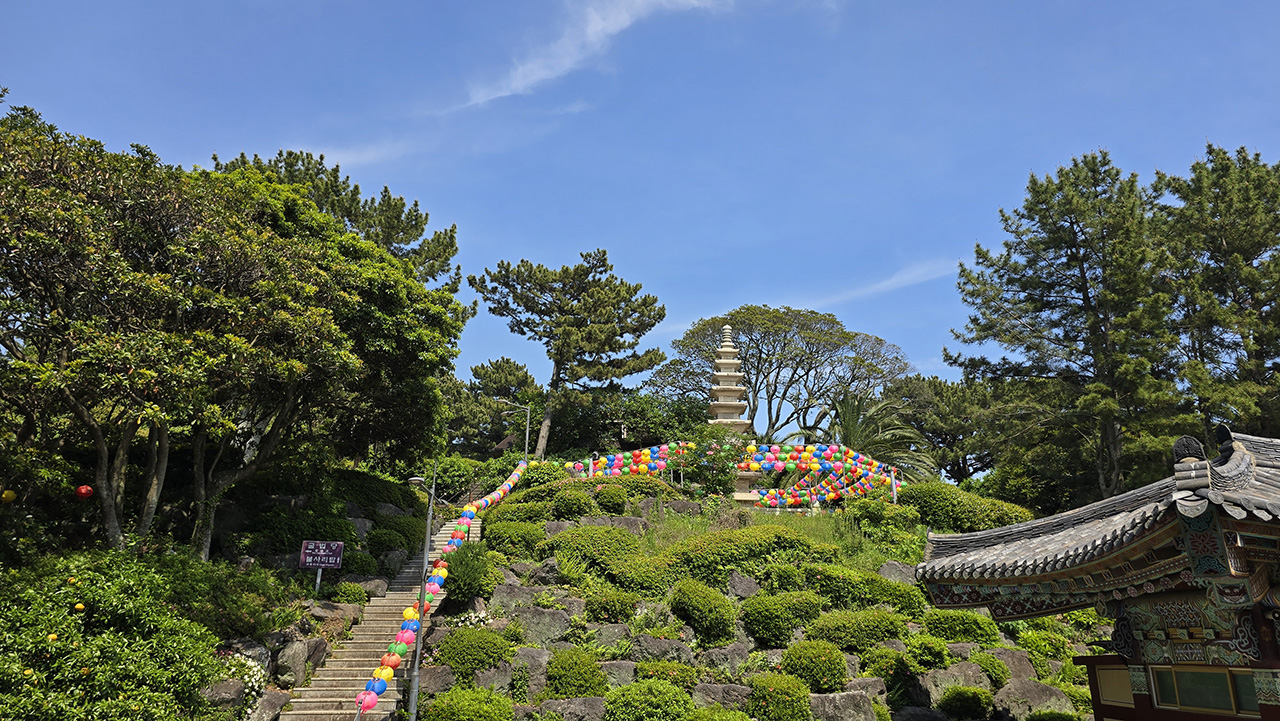 제주 약천사 부처님오신날 기념으로 연등이 달려 있었습니다.