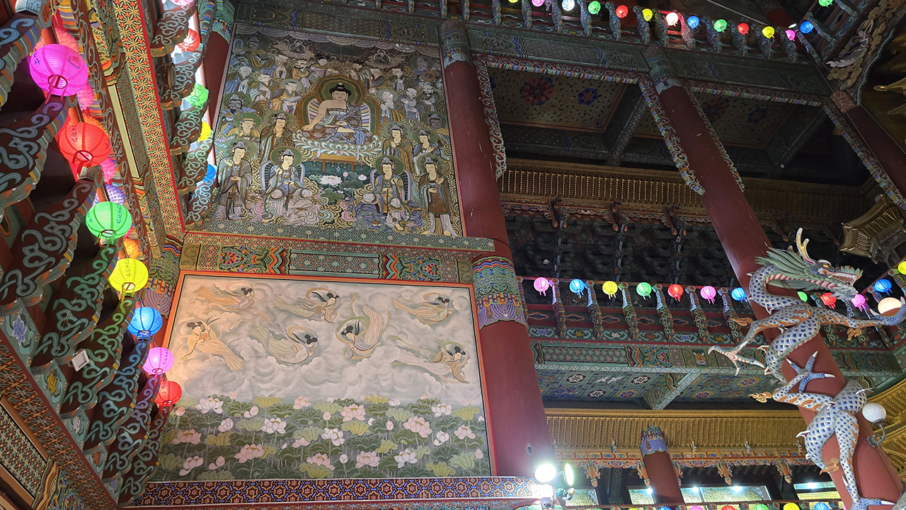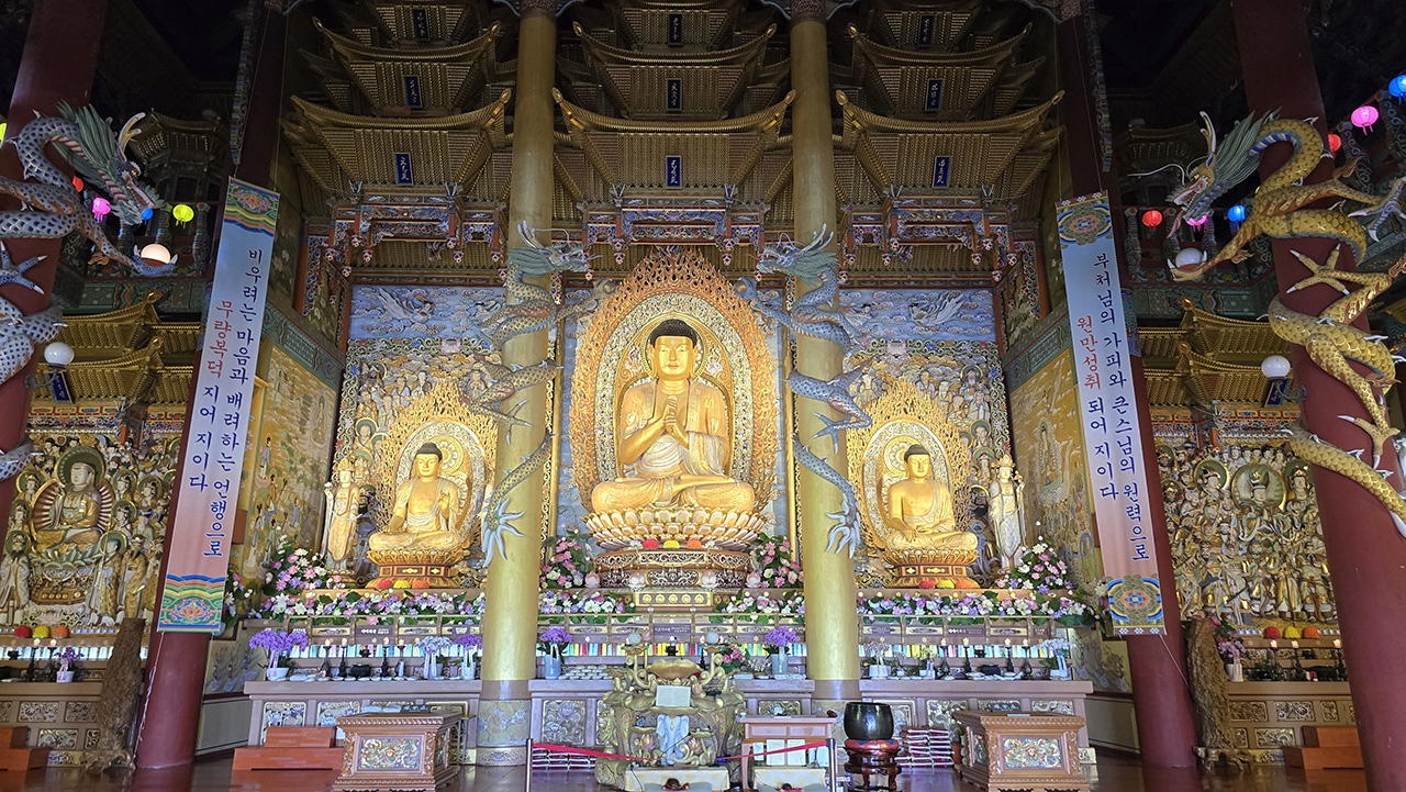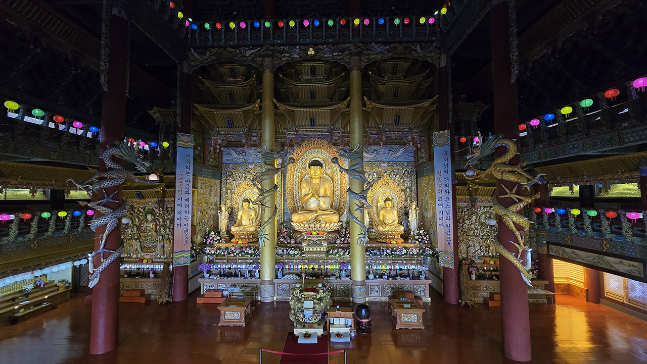 법당이 너무 커서 초광각으로 찍지 않으면 사진에 다 담을 수 없습니다.