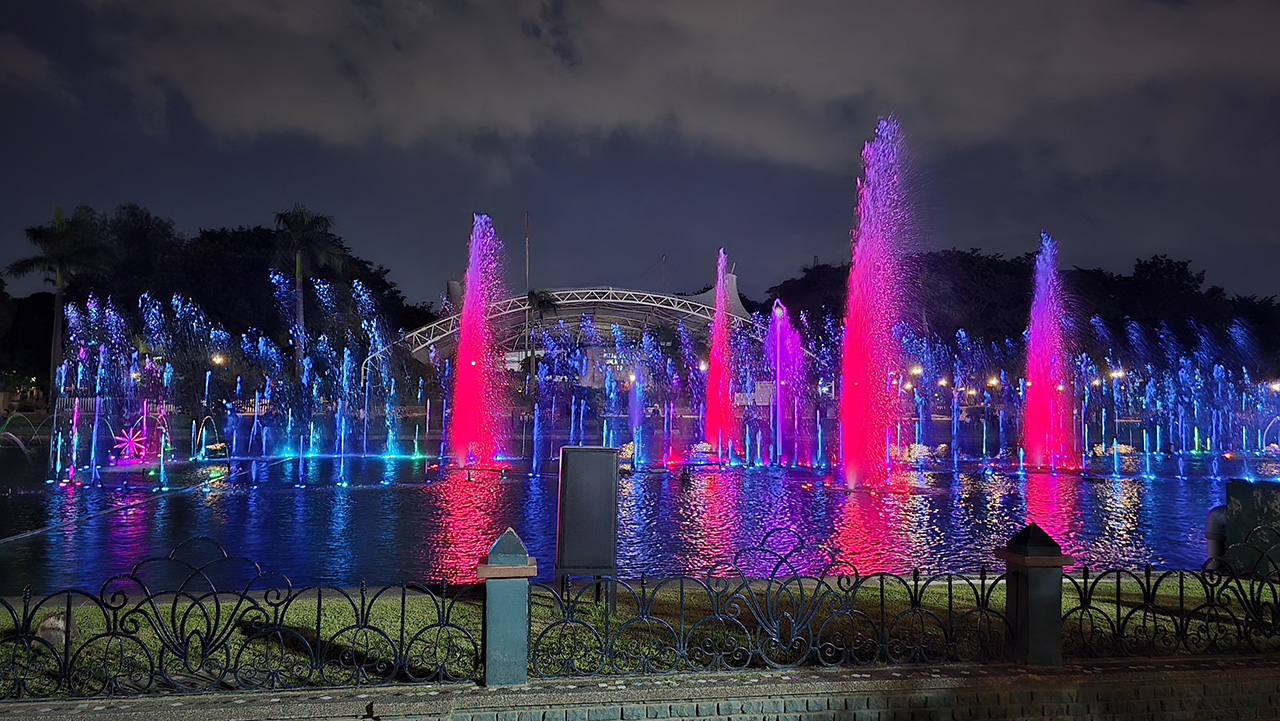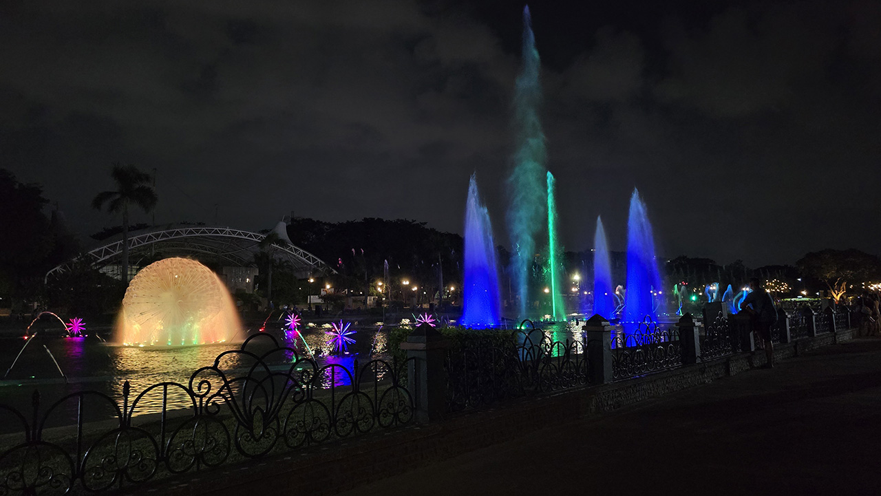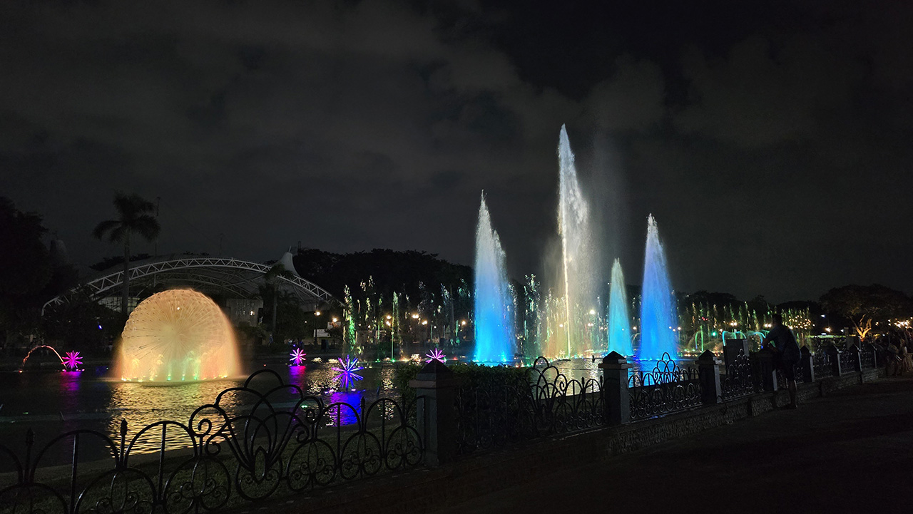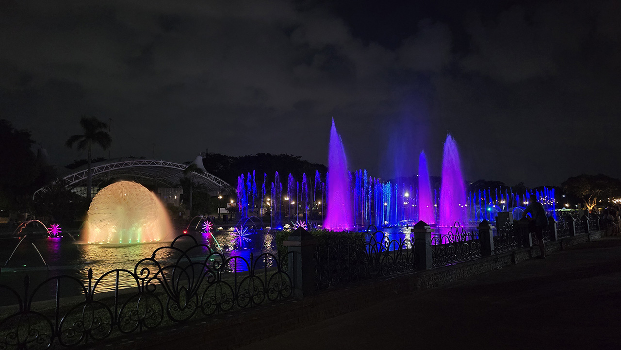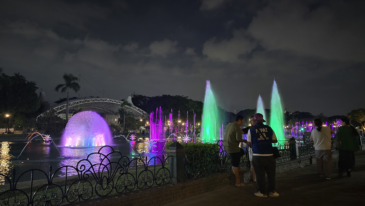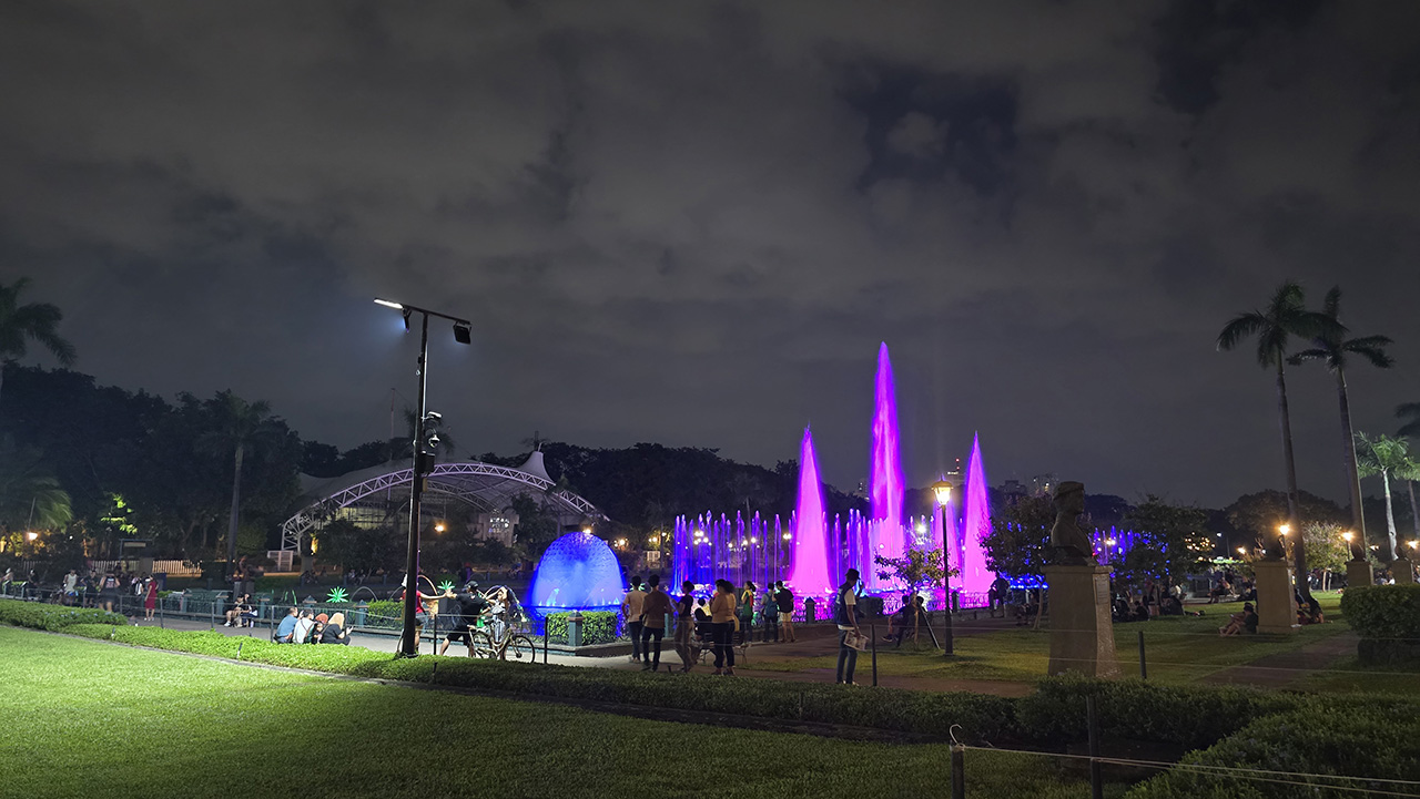 저녁에 리잘공원에 가면 음악분수쇼를 볼 수 있습니다. 필리핀 노래도 나오고 한국의 K팝도 나옵니다.