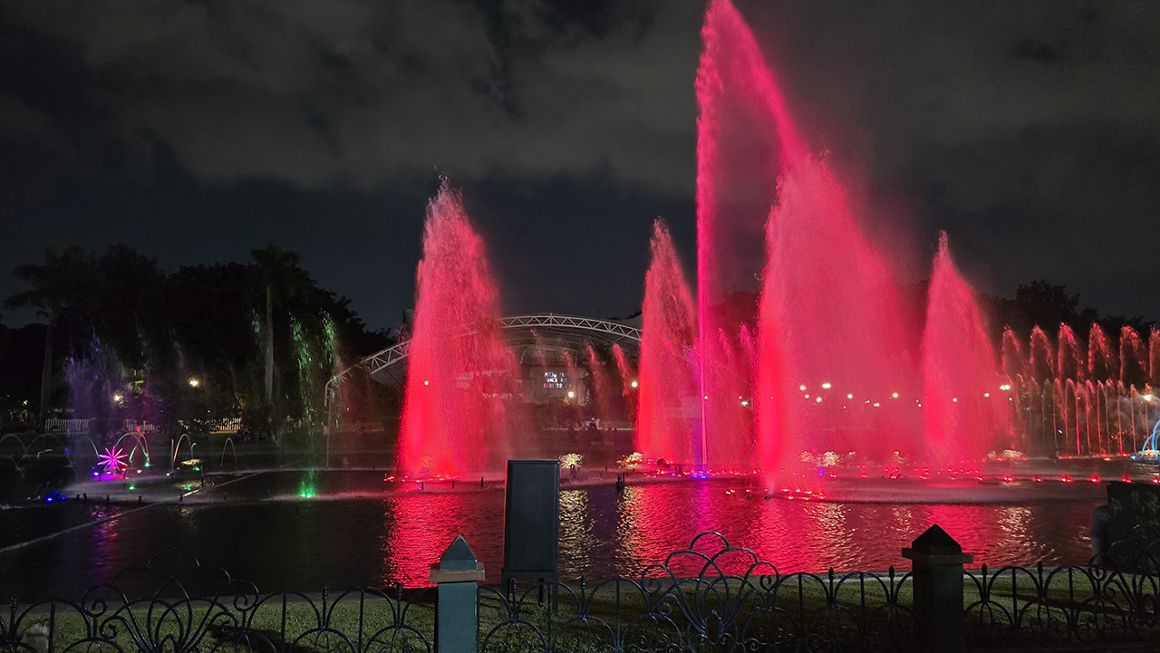 분수는 다양한 색의 조명과 어우러져 아름다운 풍경을 만들어 냅니다.