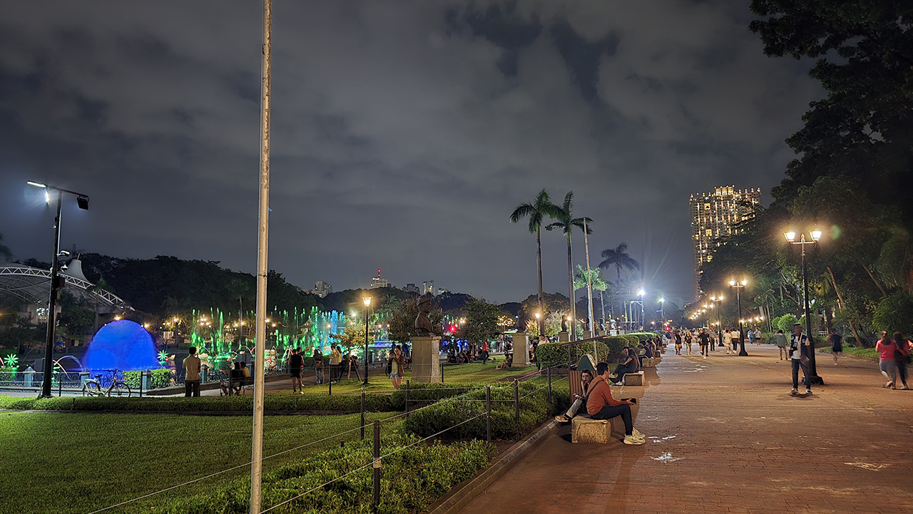 리잘공원은 낮보다 밤에 사람이 더 많습니다. 낮에는 워낙 덥기 때문이죠. 또한 밤이 되면 더 아름답기 때문입니다.