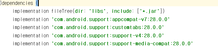 compileSdkVersion이 28미만이면 -> 28로 바꾸고
