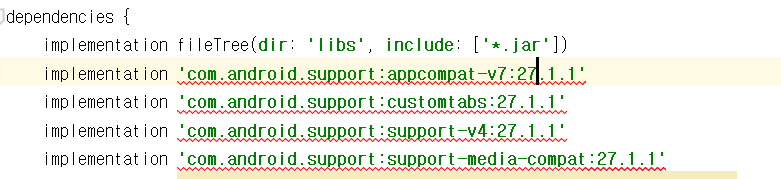 처음에 뭣도 모르고 28.1.1로 27만 28로 바꿨더니 여전히 빨간줄이라서